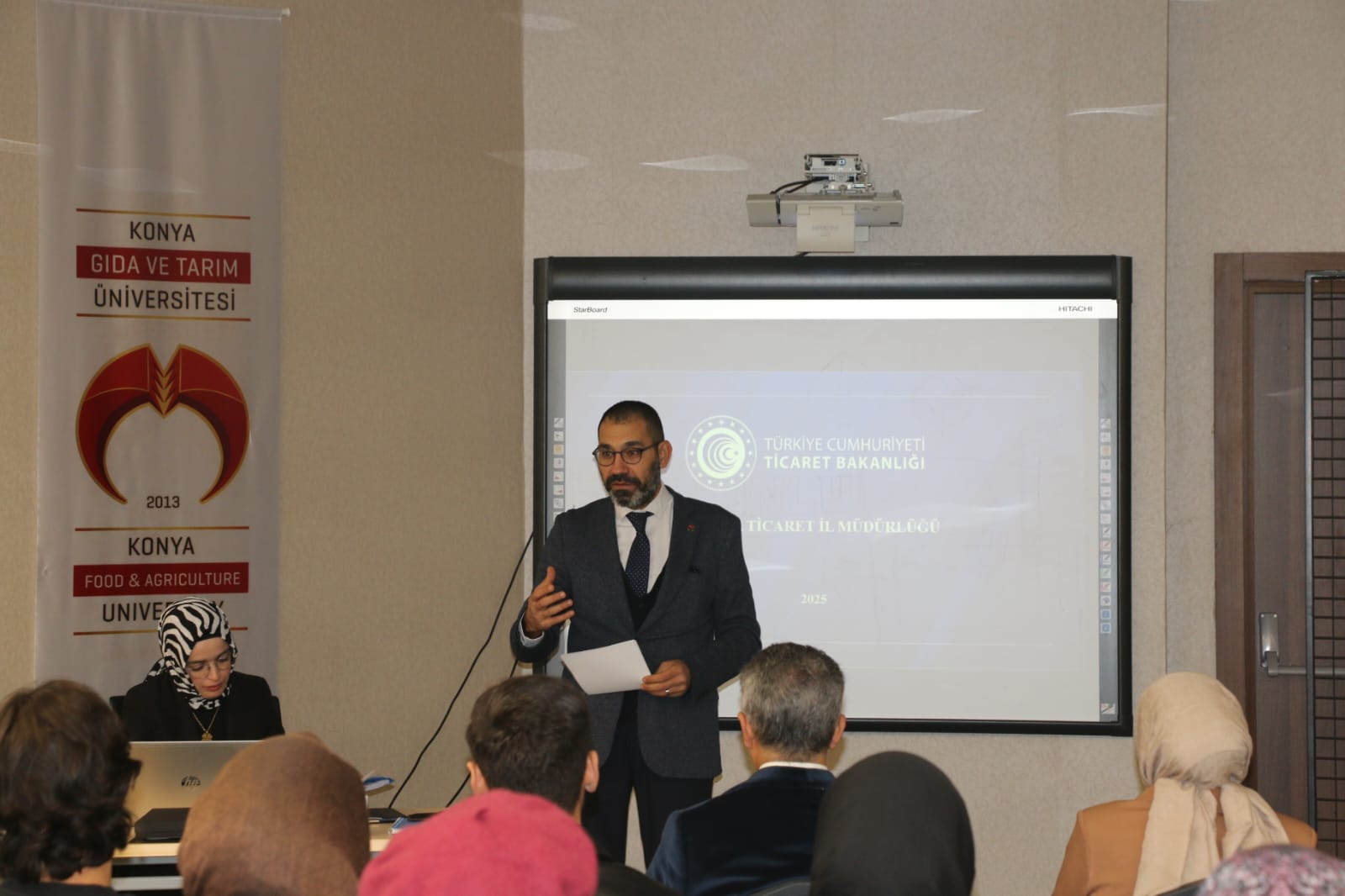 Konya Gıda ve Tarım Üniversitesi Rektör Yardımcısı Prof. Dr. Kıvanç BİLECEN ve Konya Ticaret İl Müdürü Şube Müdürü V. Galip UYAR açılış konuşmalarını yaptılar.